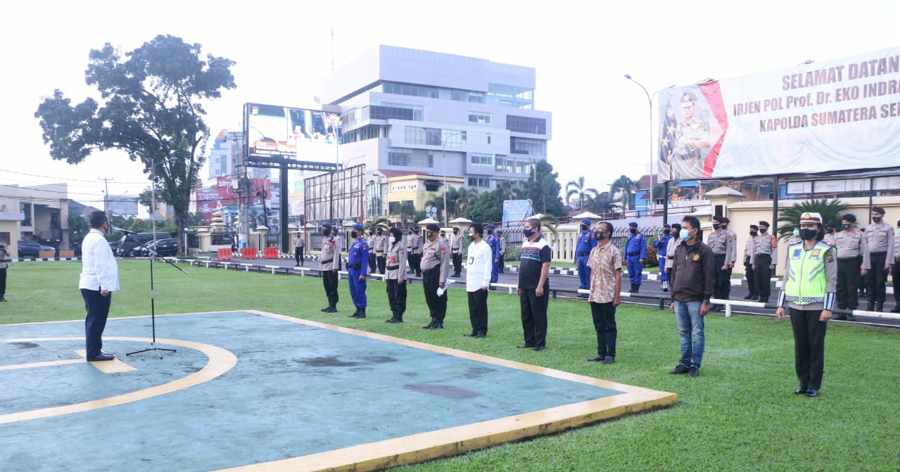 Sebelum melakukan pengamanan, anggota mengikuti apel pengamanan di Mapolda Sumsel yang dipimpin Dirreskrimum Polda Sumsel Kombes Pol Hisar Siallagan mewakili Kapolda Sumsel Irjen Pol Prof Eko Indra Heri, Minggu (24/5/2020).