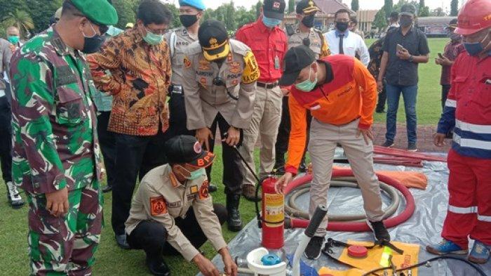 Maka apel gelar pasukan dalam rangka kesiapan antisipasi Kebakaran hutan dan lahan (Karhutla) di Kabupaten Ogan Komering Ilir tahun 2020 dilaksanakan, Jumat (12/6/2020) di halaman Mapolres OKI.