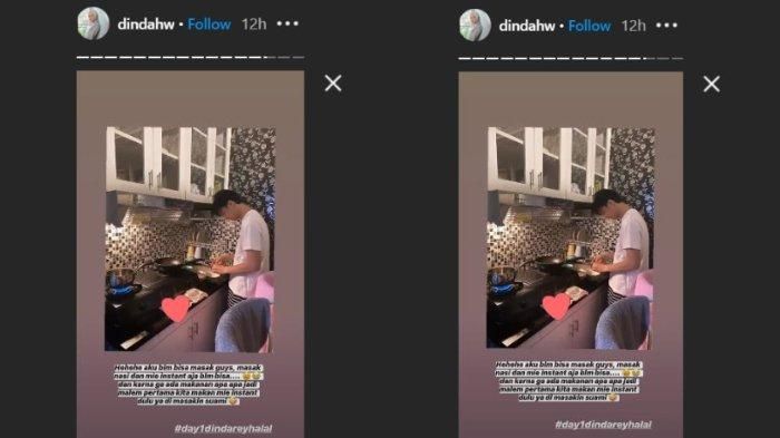 dan karena ga ada makanan apa-apa, jadi malam pertama kita makan mie instan dulu ya, di masakin suami," tulis Dinda Hauw.