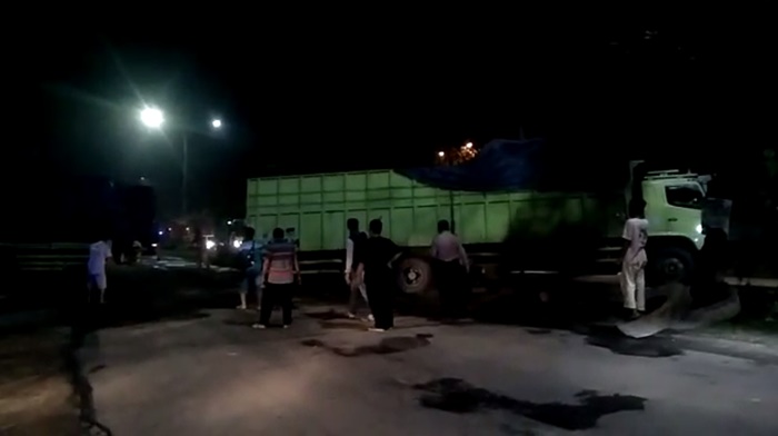 Menurut petugas kepolisian yang bertugas, truk melintang sejak pukul 13.30 WIB.