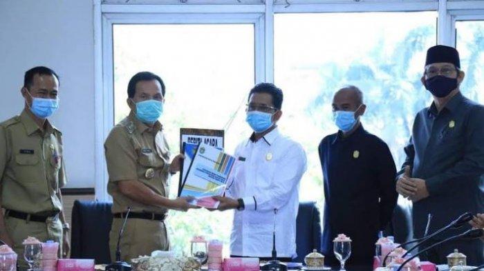Rancangan KUA PPAS Perubahan 2020 itu diterima Ketua DPRD Prabumulih Sutarno didampingi Ketua I dan II, Ahmad Palo dan Dipe Anom di di ruang rapat DPRD Prabumulih, Selasa (25/8/2020).
