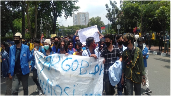 Teriakkan Yel-yel, Mahasiswa di Palembang Mulai Aksi Demo Menolak UU Omnibus Law Cipta Kerja