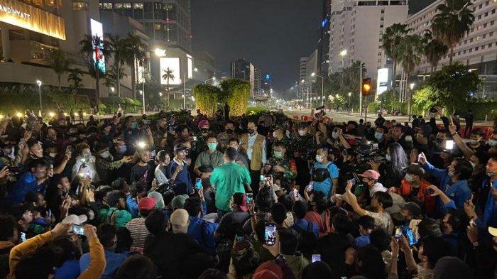 Hal itu ia utarakan di hadapan ratusan buruh yang berkumpul di kawasan Bundaran Hotel Indonesia (HI), Kamis (8/10/2020) malam.
