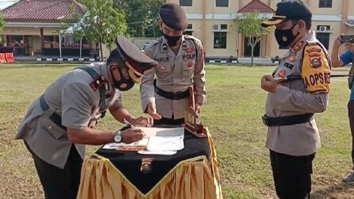 Acara serah terima jabatan dipimpin Kapolres OKU AKBP Arif Hidayat Ritonga di halaman Mapolres OKU, Jumat (20/11/2020).