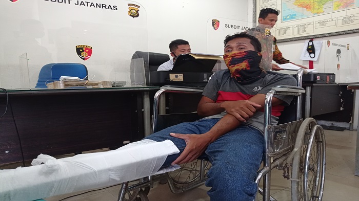 TRIBUNSUMSEL.COM, PALEMBANG - Saribi (30) buronan kasus perampokan di Dermaga Benteng Kuto Besak (BKB) Palembang, terus meringis kesakitan menahan luka akibat patah kaki yang dialaminya.