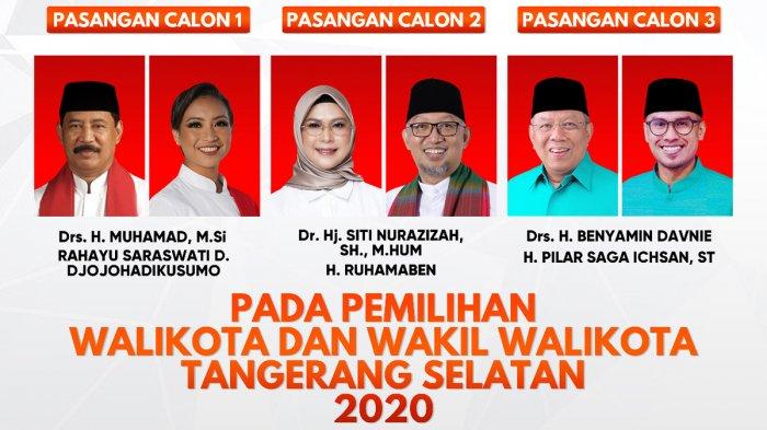TRIBUNSUMSEL.COM - Pilkada Tangerang Selatan (Tangsel) 2020 diikuti tiga pasangan calon.