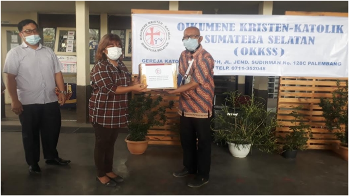 Untuk mengurangi penyebaran virus tersebut umat Kristen Katolik yang tergabung dalam Oikumene Kristen Katolik Sumatera Selatan (OKKSS) memaknai natal dengan berbagi kasih.