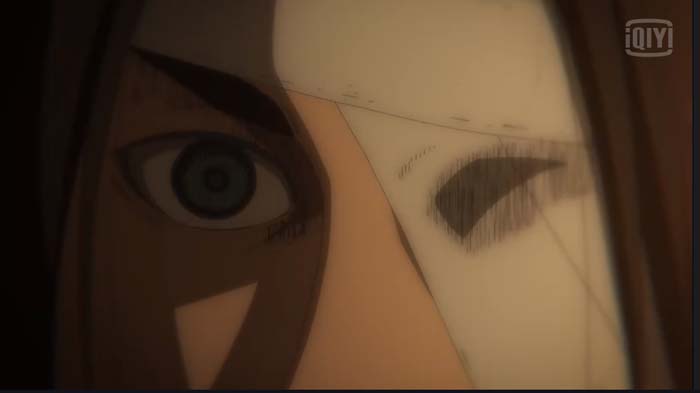Pada preview lebih menyoroti raut muka Reiner yang terkejut saat bertemu Eren di ruang bawah tanah yang gelap.