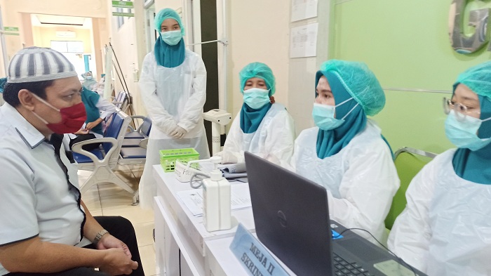 Kemudian kalau masuk kriteria bisa divaksin lanjut ke meja tiga untuk dilakukan vaksinansi.