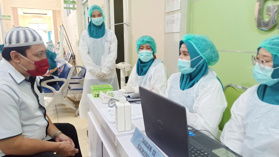 Sejak pagi hari di Puskesmas Gandus yang ada di Jalan TP Husin Damar Jaya Sungai Tenang, Kelurahan Pulokerto,