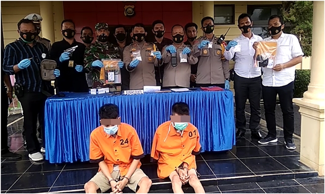 Hasilnya, petugas berhasil meringkus dua orang pelaku yang kedapatan memiliki narkoba jenis sabu dan senjata api.