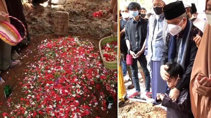 Sementara Azka takzim di depan makam sang ayah, Ustaz Yusuf Mansur terus mengusap kepala putra Maaher At-Thuwailibi.