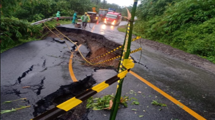 Jalan longsor sepanjang sekitar 15 meter dengan kedalaman sekitar tiga meter itu diakibatkan oleh faktor alam, terlebih hujan deras.