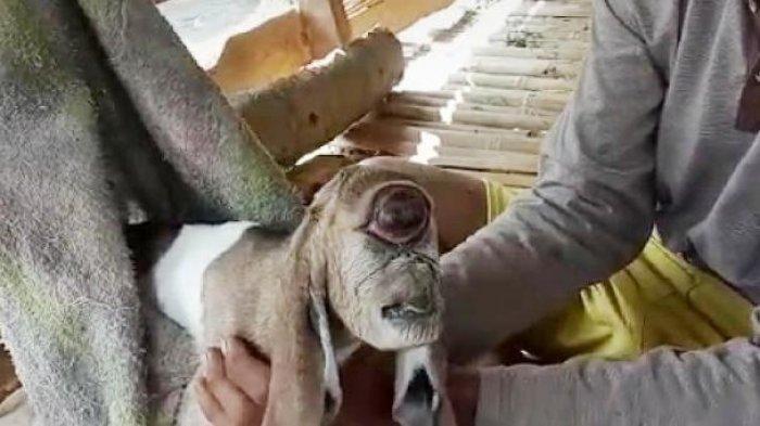 TRIBUNSUMSEL.COM - Seekor anak kambing lahir dengan mata satu gegerkan warga.