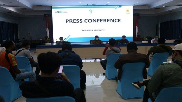TRIBUNSUMSEL.COM, PALEMBANG -PLN UIW S2JB menggelar Press Conference terkait Klarifikasi Kebakaran yang terjadi di PLTG Jakabaring Palembang, di Aula Lantai 6 Kantor PLN UIW S2JB, Jumat, (16/4/2021) Pukul 10.30 WIB.
