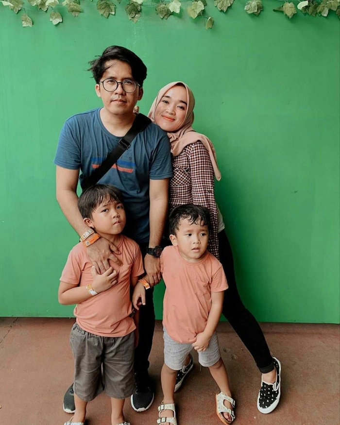Sebuah foto memperlihatkan Ayus memluk kedua anaknya dengan penuh kasih sayang.