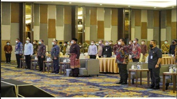 TRIBUNSUMSEL.COM, PALEMBANG - Rapat koordinasi kegiatan peta tematik pertahanan dan ruang tata (PTPR) percepatan redistribusi tanah objek reforma agraria dan kawasan hutan berbasis tata ruang dan lingkungan tahun 2021 berlangsung di Hotel Arista Palembang, Kamis 20 Mei 2021.