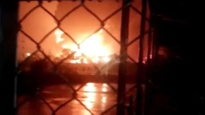 TRIBUNSUMSEL.COM, CILACAP-Kebakaran terjadi di tangki 9, Kilang minyak Pertamina Refinery Unit (RU) IV Cilacap, Jawa Tengah, Jumat (11/6/2021) malam.