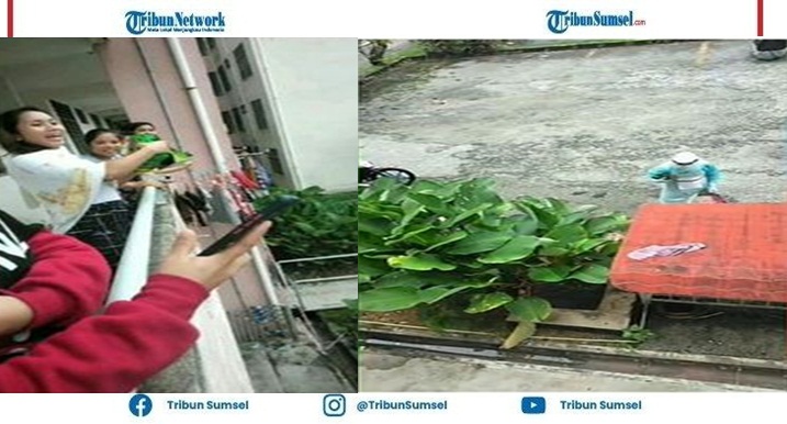 Video tersebut memperlihatkan pasien Covid-19 yang berangsur sembuh memberi hadiah pada Nakes dengan cara melempar dari atas.