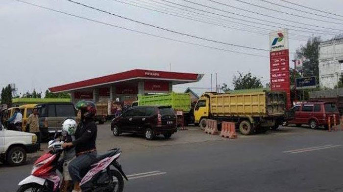 Antrean kendaraan memanjang hampir di semua SPBU yang menjual bahan bakar solar.