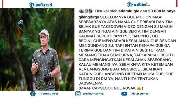 "GUE MENYADARI KESALAHAN GUE DENGAN MENGUNDANG SJ. TAPI ENTAH KENAPA GUE GA TERIMA GUE DAN TIM DIKATAIN BEGITU. KAMI MEMANG TIDAK SEMPURNA,"tulis Instagram gilangdirga.