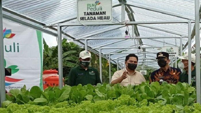 Kebun Hidroponik alam hijau, di Sako Palembang yang dibantu oleh CSR PLN dikunjungi langsung Menteri BUMN, Erick Thohir Minggu (24/10).