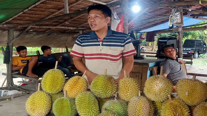 "Penjualan durian masih sedikit yang beli, sehari hanya 100-150 buah yang terjual," ucapnya.