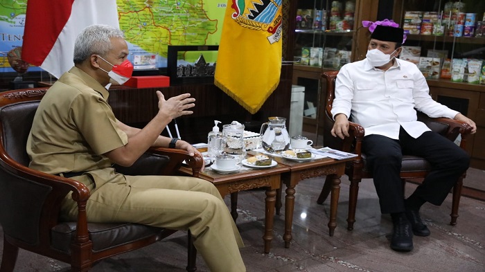 Gubernur Jawa Tengah, Ganjar Pranowo menerima kunjungan Kepala BNPT Boy Rafli Amar di Kantor Gubernur Jawa Tengah, Senin (15/11/2021).