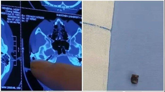 Saat melakukan MRI, dokter menemukan benda aneh bersarang di sisi kiri tengkorak kepala Xiao Chen.