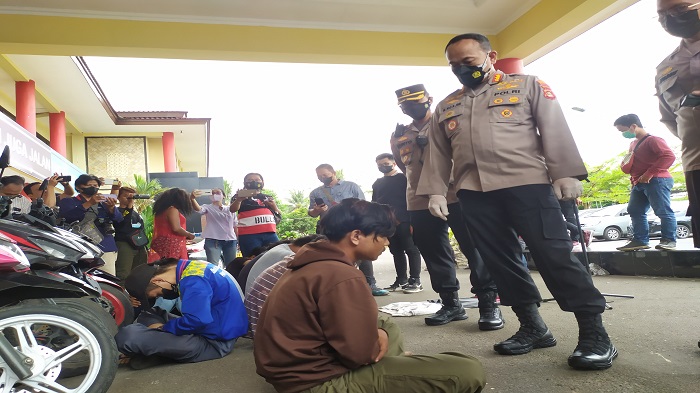 Geng Motor yang sering melakukan aksi sweeping dengan berkendara sepeda motor dan membawa senjata tajam diringkus satuan Tim Beguyur Bae Opsnal Ranmor satuan Reskrim Polrestabes Palembang, Kamis (10/2/2022).