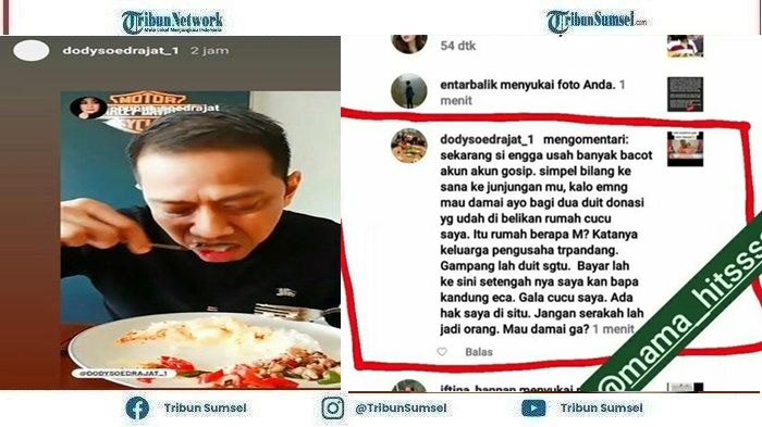 "Sekarang si engga usah banyak bacot akun akun gosip," tulis instagram dodysoedrajat_1.
