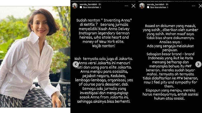 "Sudah nonton 'Inventing Anna' di Netflix? Seorang jurnalis menyelidiki kisah Anna Delvey Instagram Legendary German heiress, who stole heart and money of New York elite. Wajib nonton!," tulis Wanda Hamidah di Instagram Storynya.
