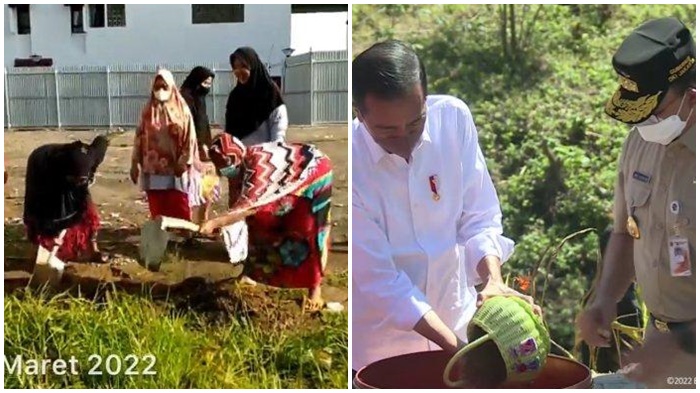 Hasilnya, tanah yang dicangkul bisa memenuhi dua wadah anyaman.