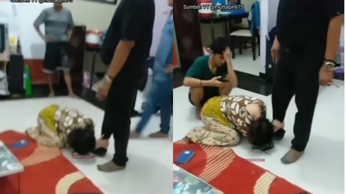 Istri tersebut bahkan rela mencium kaki sang suami agar mendapatkan maaf agar diampuni.