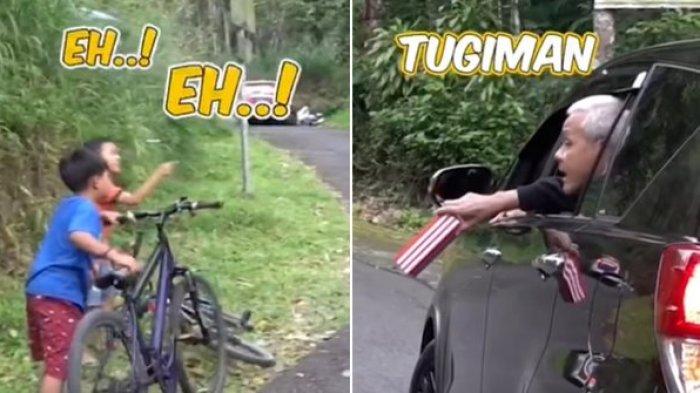TRIBUNSUMSEL.COM- Momen tak terduga Gubernur Jawa Tengah Ganjar Panowo bertemu dengan dua bocah di pinggir jalan viral di media sosial.