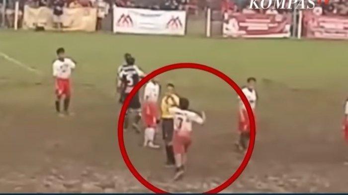 Dalam video yang beredar terlihat Edy Mamat memukul wasit karena memprotes keputusan yang memberikannya kartu merah.