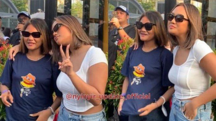Mengenakan crop top bewarna putih dan celana jeans, Marion Jola terlihat mengajak foto bersama Kurma Citayam.