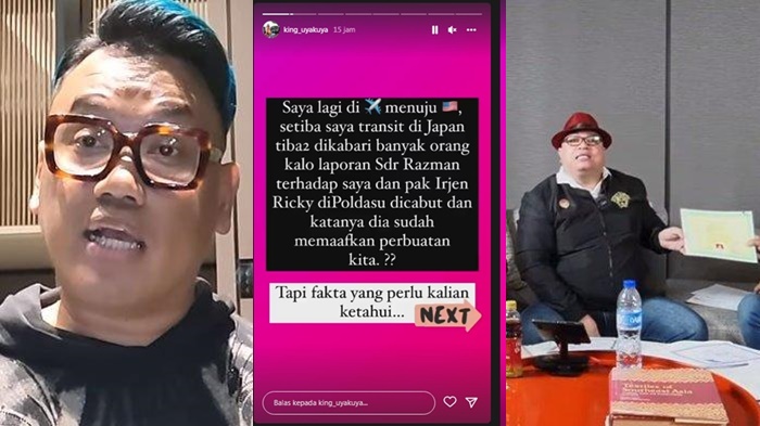 "Setiba saya transit di Japan, tiba2 dikabarin banyak orang kalo laporan Sdr Razman terhadap saya dan pak Irjen Ricky di Poldasu dicabut dan katanya dia sudah memaafkan perbuatan kita?" ungkap Uya Kuya dikutip dari instagram storynya.