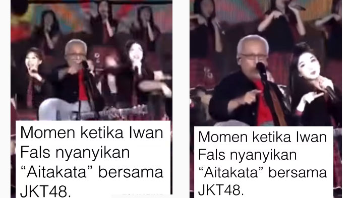 Tak hanya nyanyikan lagu Aitakatta, Iwan Fals pun diketahui juga ikut melakukan tarian khas dari Grup JKT48 hingga videonya menjadi heboh di media sosial.