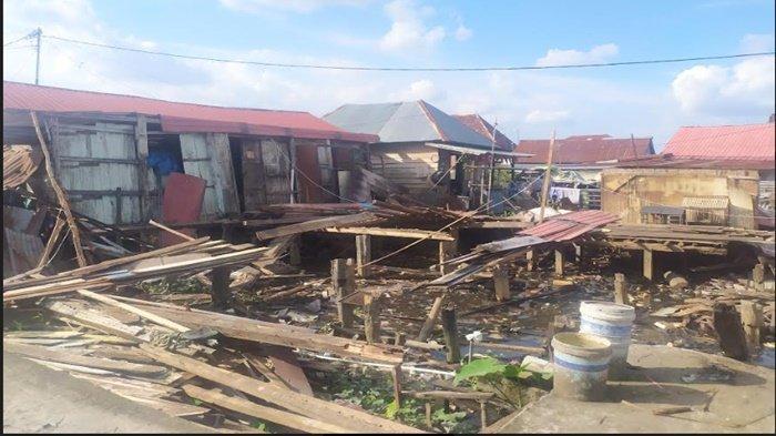 Pantauan Tribunsumsel.com saat mendatangi kembali rumah Romlah, bangunan rumah kayu miliknya kini telah dibongkar dan hanya menyisakan kayu-kayu pondasi rumah, Senin (12/9/2022).