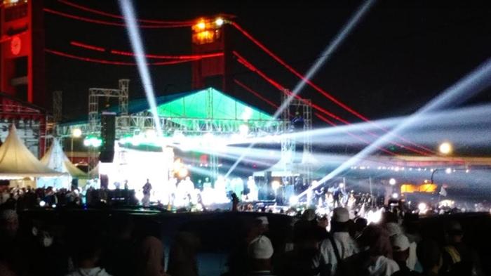 TRIBUNSUMSEL.COM, PALEMBANG - Ribuan warga Palembang yang mayoritas umat muslim, memadati pelataran Benteng Kuto Palembang (BKB), Sabtu (24/9/2022) malam dalam rangka Tabligh Akbar Menyambut Maulid Nabi Muhammad SAW.