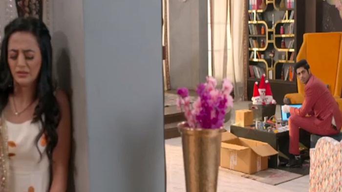 Riddhima yang bersembunyi dibalik tembok, tak lama kemudian Vihaan meninggalkan ruanga itu dengan boneka natal.