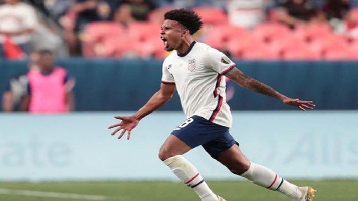 Pemain Juventus, Weston McKennie berselebrasi usai mencetak gol bersama Timnas Amerika Serikat