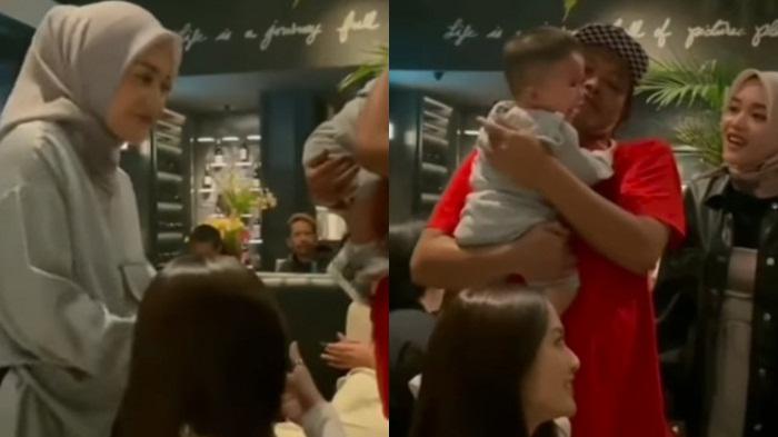 Dalam momen ulang tahun Sule ini, tampak sang komedian yang menyambut kedatangan Nathalie dan menggendong sang anak, Adzam.