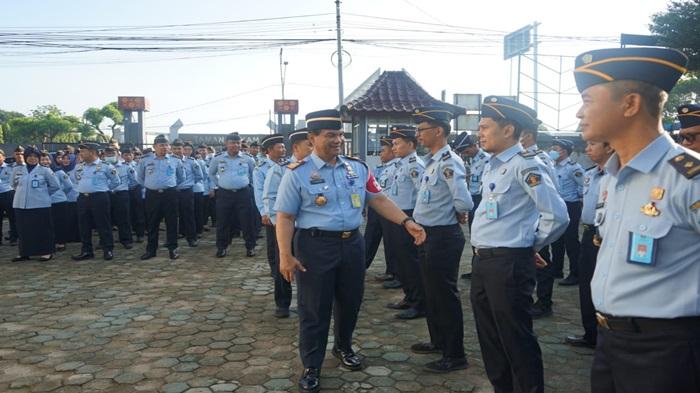 TRIBUNSUMSEL.COM,PALEMBANG- Kakanwil Kemenkumham Sumsel, Ilham Djaya memimpin langsung apel pagi yang bertempat di halaman Kantor Wilayah Kementerian Hukum dan HAM Sumatera Selatan, Senin (13/3/2023).