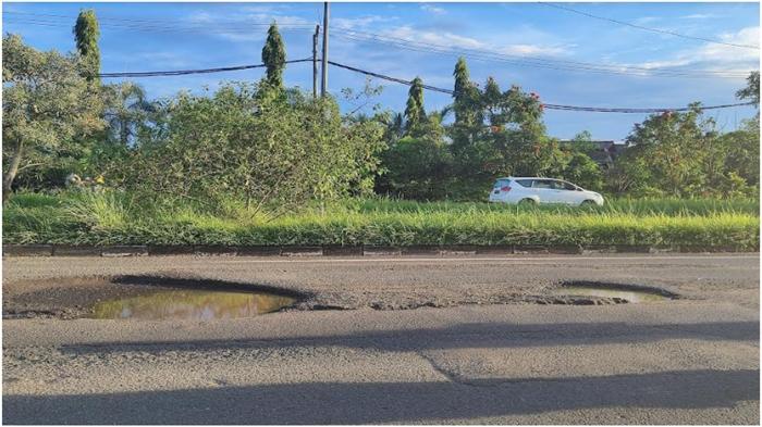 Lubang-lubang yang ada bahkan cukup dalam. Bagi pengendara roda dua maupun roda empat diharapkan berhati-hati jika melalui jalan tersebut.
