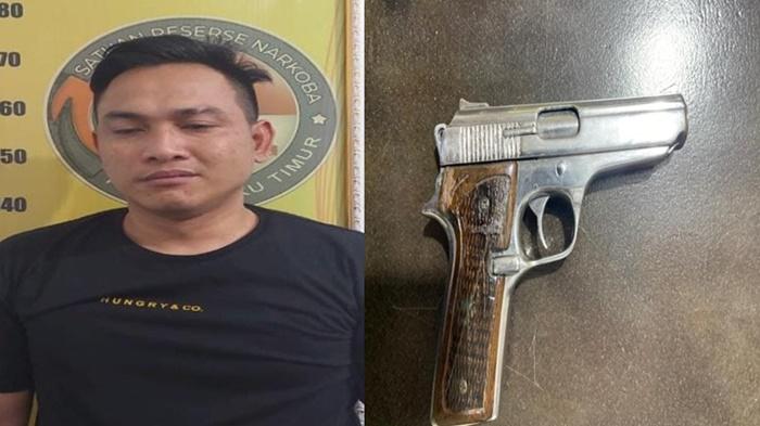 Selai mengamankan barang bukti narkoba, Polisi juga mengamankan sepucuk senjata api rakitan itu ditemukan anggota di etalase di dalam kamar pelaku.