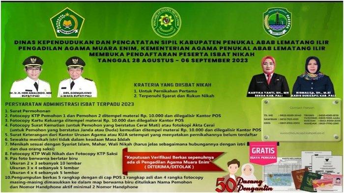 Mereka Dinas Dukcapil Kabupaten PALI Rizmaliza telah menyebar pengumuman pembukaan pendaftaran Itsbat Nikah.