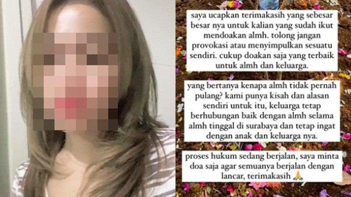 "Saya ucapkan terimakasih yang sebesar besarnya untuk kalian yang sudah ikut mendoakan almh. Tolong jangan provokasi atau menyimpulkan sendiri. Cukup doakan saja yang terbaik untuk almh dan keluarga," tulisnya.