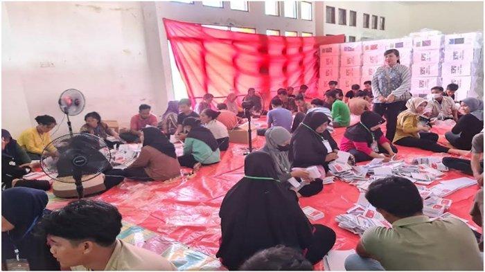 TRIBUNSUMSEL.COM, MARTAPURA - Komisi Pemilihan Umum (KPU) Kabupaten OKU Timur mulai sortir dan melipat surat suara Pemilu 2024 untuk Pemilihan Presiden (Pilpres), Pemilihan Legislatif DPR RI, DPRD Provinsi, DPRD Kabupaten dan DPD